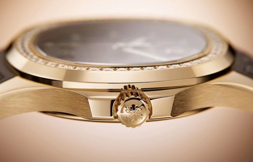 表盘材质:灰褐色表盘,饰有Aquanaut浮雕图案,搭配金质立体字块。