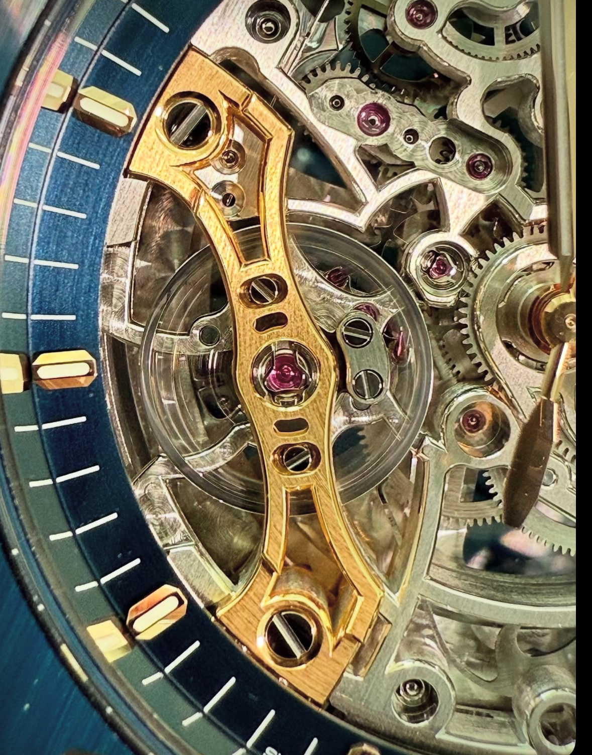 新款蓝色内敛至极,远看近乎黑色,近观却能展现独特魅力。没错,它会根据光线质量与角度,从浓郁的深蓝变为柔和的浅调。抛开光学原理,若有幸购得此表,您会发现它更接近本纳明亚最初构想的那种深邃蓝色。