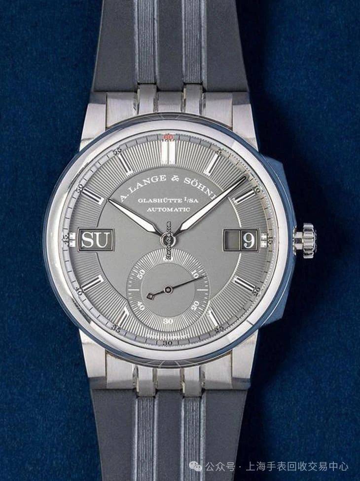 有点令人意外Odysseus最受欢迎的竟不是最初问世的不锈钢搭配蓝面型号,反而是稍晚推出的白金型号363.068,这款錶搭配黑色橡胶錶带对于朗格来说也是一大突破,面盘改成了灰色系依旧是朗格四平八稳的创作风格,整只錶散发较為强烈的现代气息,设计低调却又处处展现耐人寻味的讲究细节,堪称是运动錶中的极品。