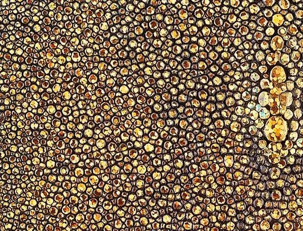 香奈尔的鱼子酱皮革可能是法国时装店最知名的皮革。这种皮革是用小牛皮制成的,鱼子酱的蓬松外观要比牛皮皮革长,比羊皮更坚韧、更重,是那些想要更经常携带香奈儿包包的人的首选。
