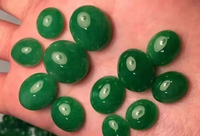 翡翠蛋面看似不大,但用料十分严苛,首先种水要好,有莹光,其次是底子干净,绺裂、白棉、黑点、花都不能有,而且大小也有讲究。