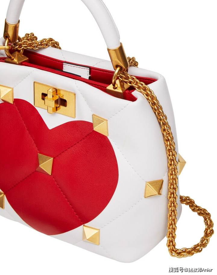 七夕限定系列首推Valentino春夏新登场的Garavani Roman Stud铆钉包,将白色为底色铆钉包中央直接放上爱心图案,包包内里则以象征爱情的红色呈现。