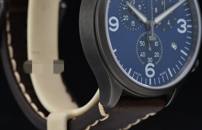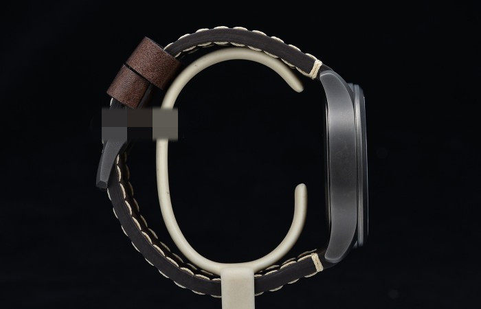 腕表配一条复古棕色真皮表带,白色缝线,配灰色镀层处理的不锈钢针扣,方形针眼突出它的户外、运动感。舒适而加厚的表带,佩戴方便,适宜秋冬的季节。