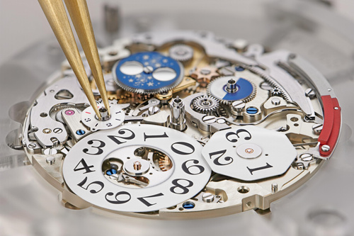 此款腕表的亮点在于其专利外置月份环,实现全新的月份显示方式。它取代了由齿轮推进的传统机制。这项创新技术为机芯设计师带来新挑战。设计师必须思索如何令大型显示环在每月最后一天转动30度。此增幅较轻巧细小的程序轮多出四倍。为此,设计师另觅推进月份环的方式,并为每月长度的取样过程寻求新方案。