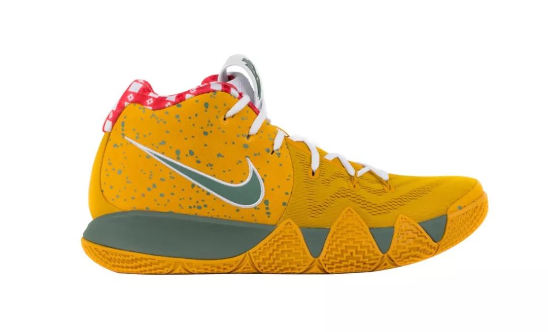 Concepts x Kyrie 4 “Yellow Lobster” 市场价: $2700(RMB 18000+) 由波士顿著名鞋店联乘 Nike 打造的 Kyrie 4“龙虾系列”,以稀少的产量加上欧文的影响力,价格一路飙升。其中,“黄龙虾”配色价格最高,而Kyrie 4的实战性能也是不容置疑的。